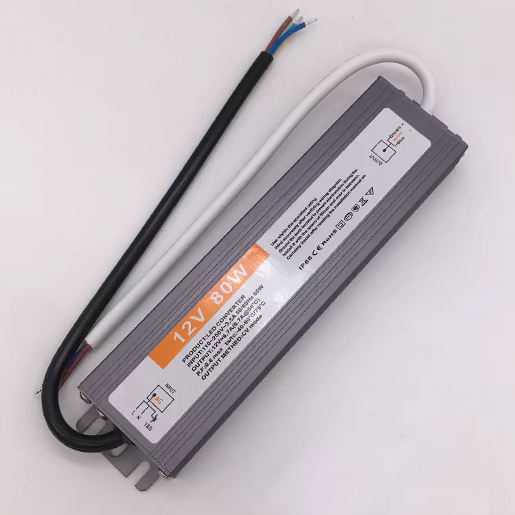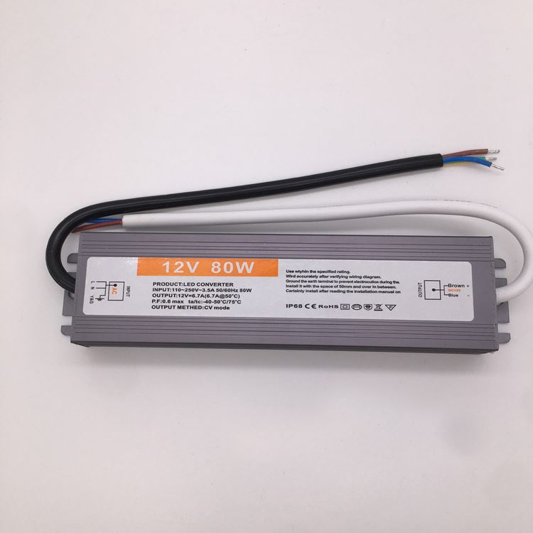 12V 24V 80W Waterproof Power Supply Constant Voltage Feature * 1. 2-year warranty * 2. 0.3-0.5% defective rate * 3. 100% inspection and testing prior to each shipment * 4. Full protection: shortcut, overload, over-current and over-temperature * 5. High efficiency ≥83% * 6. 100% replacement of the defective goods * 7. Flexible and fast delivery time * 8. With the newest international standard CE, ROHS, FCC, SAA and CB certificates * 9. 24 hours online service * 10. OEM&ODM service for specific demands * 11. High quality with competitive prices * 12. Logo customization available * 13. Small quantity acceptable * 14. Consolidated packaging to ensure transport security * 15. 100% customers’ satisfaction Scope: Widely used on many kinds of LED lights 1. Suitable for all-weather,working temperature range:-40°C~+50°C 2. All series are equipped with power factor compensation,high efficiency and energy saving. 3. Small size design,easy assembly and maintain constant high conversion efficiency. 4. High quality raw materials and electronic components to esnure quality consistency 5. First-class craftsmanship and strict quality control management
