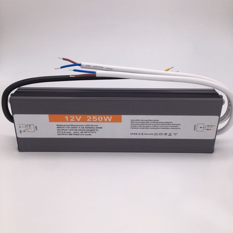 12V 24V 250W Waterproof Power Supply Constant Voltage Feature * 1. 2-year warranty * 2. 0.3-0.5% defective rate * 3. 100% inspection and testing prior to each shipment * 4. Full protection: shortcut, overload, over-current and over-temperature * 5. High efficiency ≥83% * 6. 100% replacement of the defective goods * 7. Flexible and fast delivery time * 8. With the newest international standard CE, ROHS, FCC, SAA and CB certificates * 9. 24 hours online service * 10. OEM&ODM service for specific demands * 11. High quality with competitive prices * 12. Logo customization available * 13. Small quantity acceptable * 14. Consolidated packaging to ensure transport security * 15. 100% customers’ satisfaction Scope: Widely used on many kinds of LED lights 1. Suitable for all-weather,working temperature range:-40°C~+50°C 2. All series are equipped with power factor compensation,high efficiency and energy saving. 3. Small size design,easy assembly and maintain constant high conversion efficiency. 4. High quality raw materials and electronic components to esnure quality consistency 5. First-class craftsmanship and strict quality control management