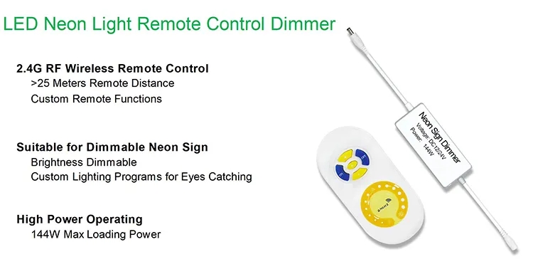 Neon Sign Dimmer oem waterproof 12V 24V ip68 outdoor Flexible Neon light wireless rf remote control Smart wifi led Neon DimmerLED Neon Lights Dimming Controller 2.4GHZ RF Remote Wireless Control 12-24V 10A dc 12V Flex Illuminated Letter Sign Neon Dimmer LED Flex Neon Sign Dimming Controller