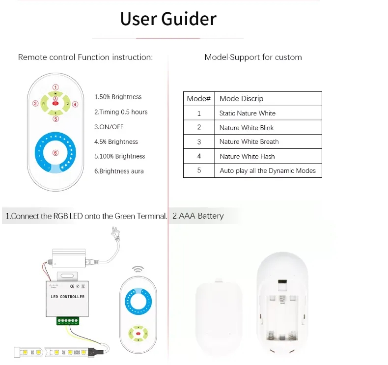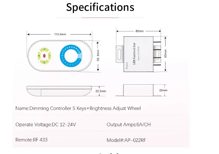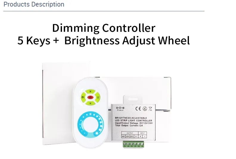 Dimmer Single Color Led Touch DC12V-24V 6A Rf Remote Control 433Mhz Dimmer Led Strip ControllerWarranty(Year):2-Year Lighting solutions service:Lighting and circuitry design Luminous Efficacy(lm/w):120, 120 Product Weight(kg):0.15 Place of Origin:Guangdong, China Brand Name:AP Type:Remote Control Max. Load Power:144w Connection Mode:RF REMOTE CONTROL Product name:Dimmer Led Strip Controller Voltage:DC12V-24V Certificates:CE ROHS Color:White output current:6A/CH Material:PVC output mode:Common anode connection operating temperature:-20℃~+60℃ output channel:1CH Mono LED