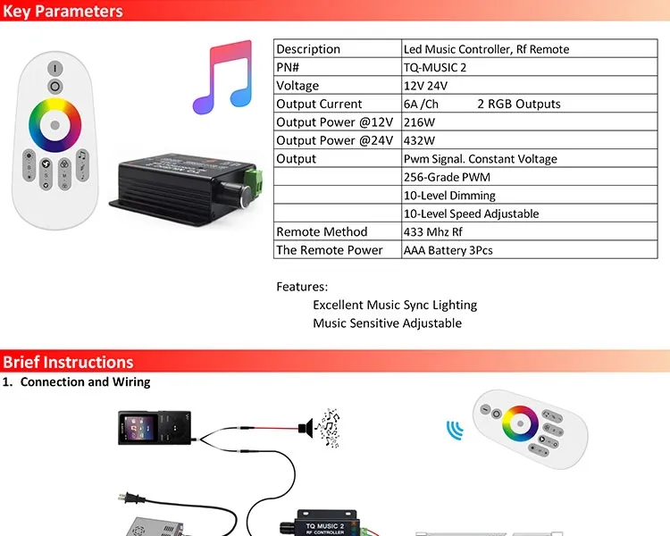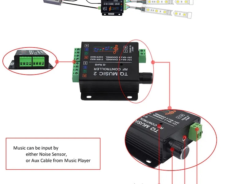 chinese supplier hot sales dc12v home marine led music dj lights lighting led music controller for rgb led stripLuminous Efficacy(lm/w):0.05 Place of Origin:China Brand Name:OEM Type:Remote Control Max. Load Power:432W @24Vdc Connection Mode:RF Remote Input Voltage:12Vdc 24Vdc Output Power:216W @12Vdc Output signal:Music Sync PWM Signal Music Input 1:Air Noise Sensor Noise Sensor Sensitivity:-56DB Music Input 2:Aux Cable Input from Music Player SNR ( Signal-Noise-Ratio):>66DB Remote Radio Frequency:433MHz Operating Temperature:-20°C +65°C Certificates:CE ROHS