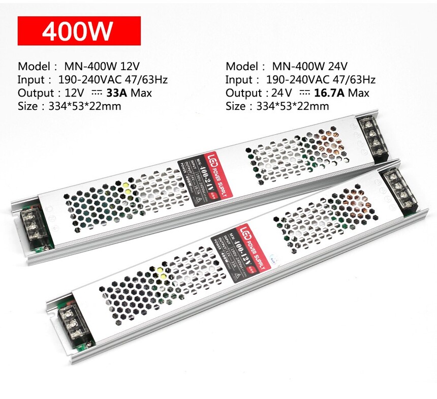 IP20 Switching Power Supply 12V 24V Indoor Application 12V: 60W 100W 150W 200W 300W 400W 24V: 60W 100W 150W 200W 300W 400W